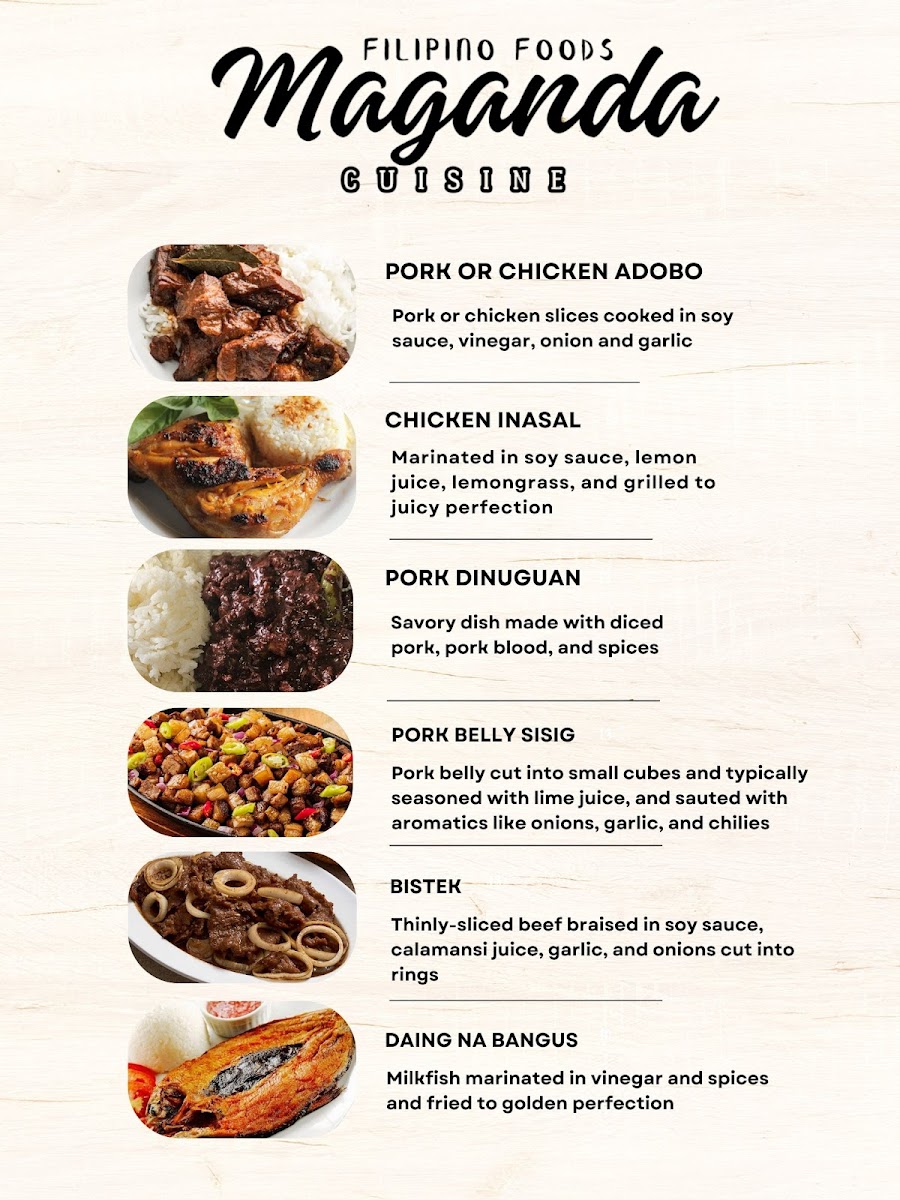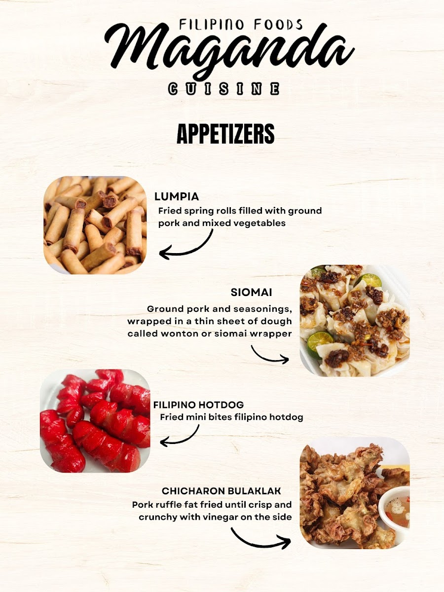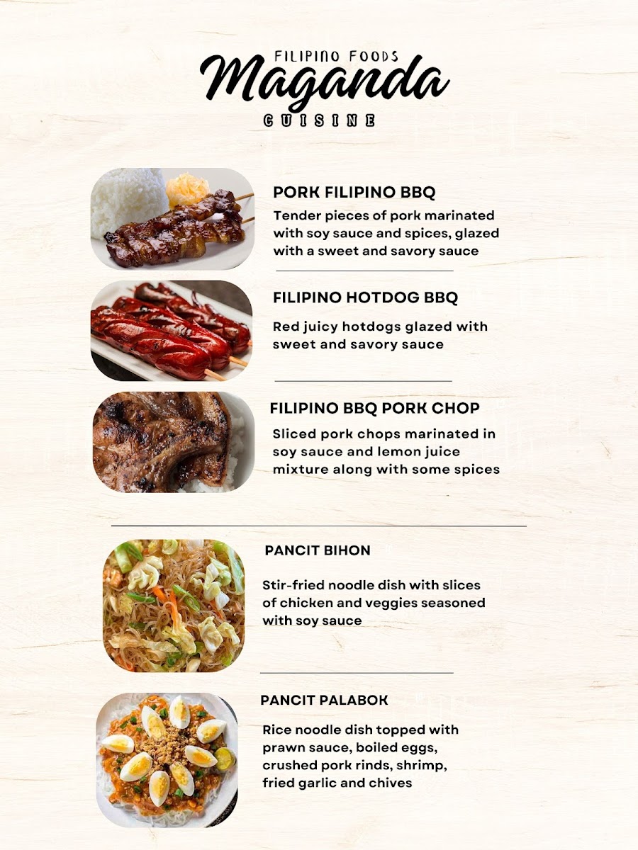 In conclusion, the menu at Maganda Cuisine offers a fantastic variety of authentic Filipino dishes that are rich in flavor and tradition. With a mix of classic favorites, delicious appetizers, refreshing drinks, and indulgent desserts, it’s the perfect place to enjoy a true Filipino dining experience.
